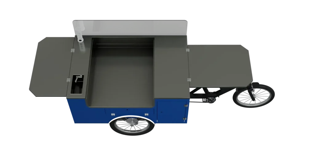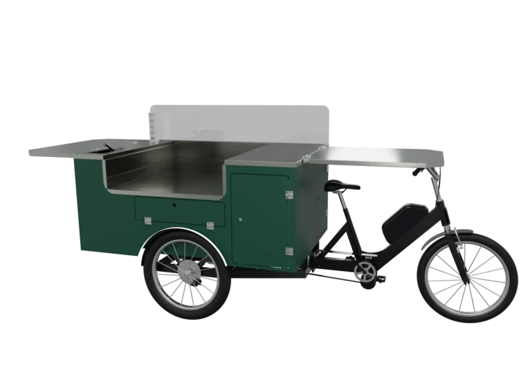 I carretti a spinta non sono (ancora) disponibili nel configuratore — il nuovo progetto del cassone modulare ci ha tenuti piuttosto impegnati! La buona notizia è che qualsiasi allestimento disponibile per le cargo bike può essere realizzato anche su carretto a spinta, sebbene il cassone risulti leggermente più stretto.